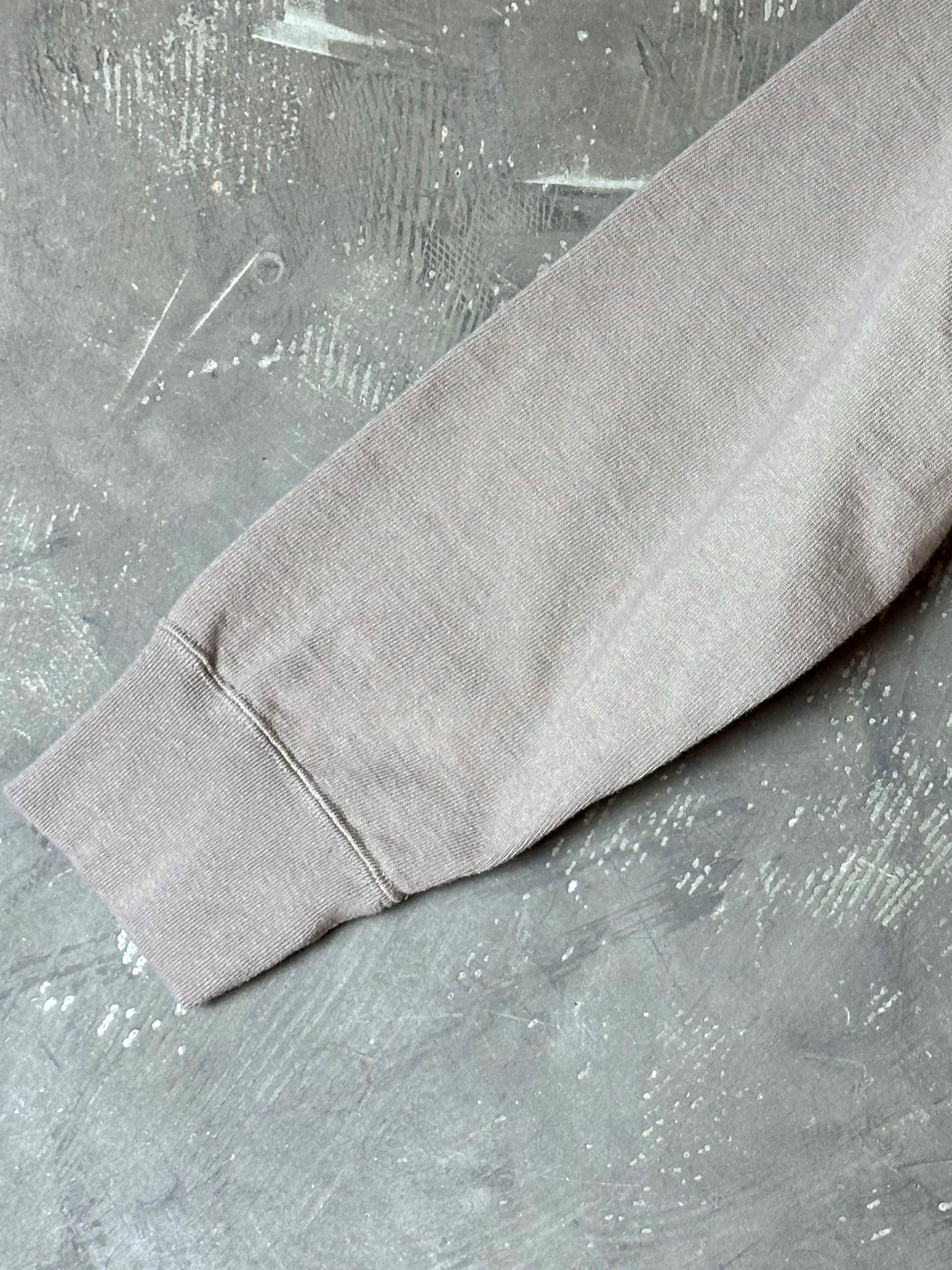 シンプルでクラシカルな雰囲気のハイネックトレーナーです。ミリタリーのインナーウエアーのような仕上がりです。首周りにウォーム感を与えてくれ、秋冬の着こなしに重宝する1枚です。大きいサイズの丸胴編みを活かしゆったりと着れるものに仕上げています。肩を落としたサイズ感で着丈を短く設定して女性らしいシルエットに落とし込みました。