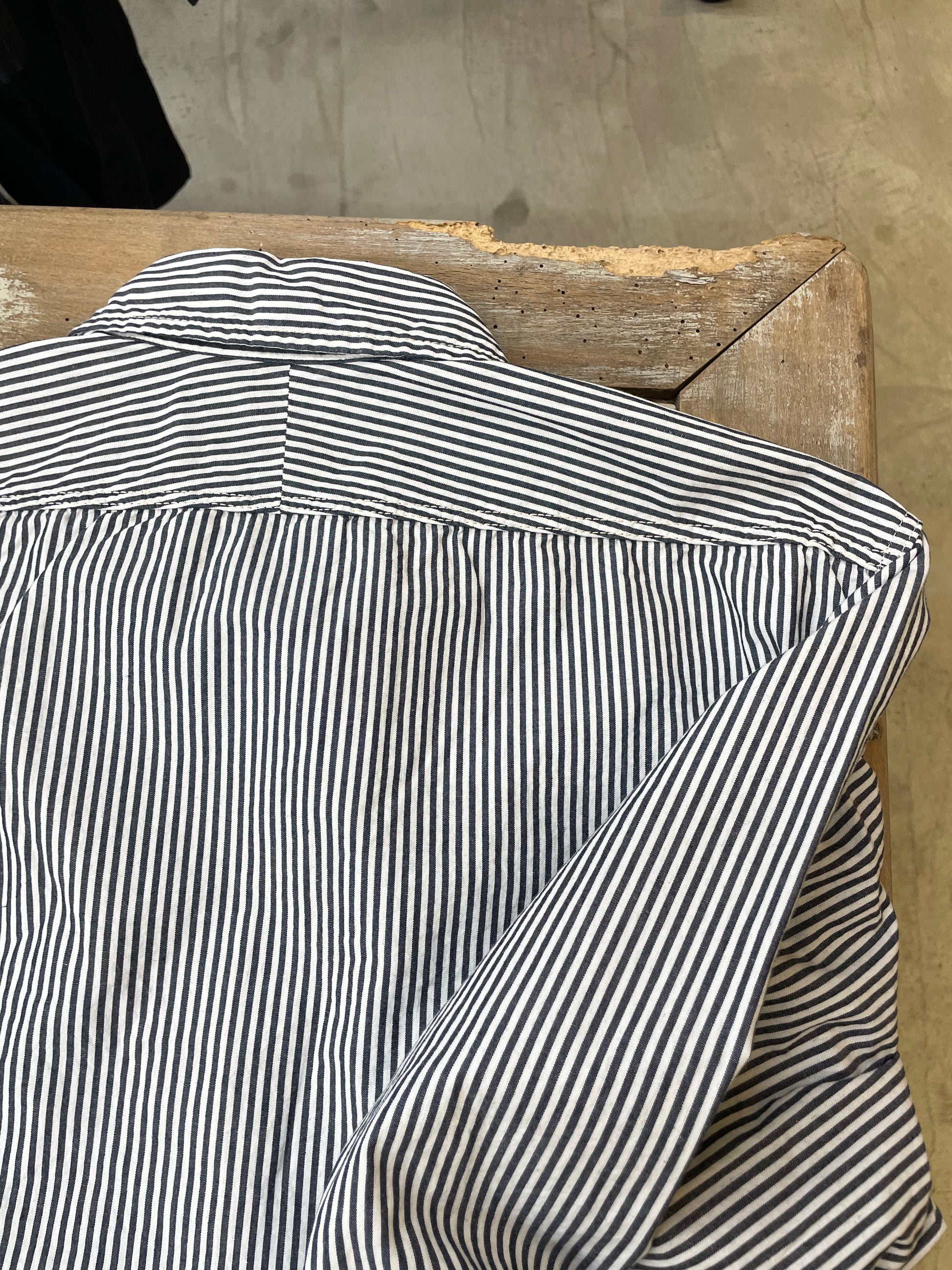 OMNIGODのシャンブレーシャツは40年代のUSネイビーのワークシャツがデザインベースになります。両胸のアウトポケットが特徴的なデザインです。着丈を短めに設定したボックス型のシルエットで5Pジーンズをはじめ、ベイカーパンツ、チノパンなど幅広いアイテムに合わせやすい形になります。最近ではテーラードジャケットのインナーに合わせたりとアメリカントラッドなアイテムとして非常に重宝するアイテムになります。