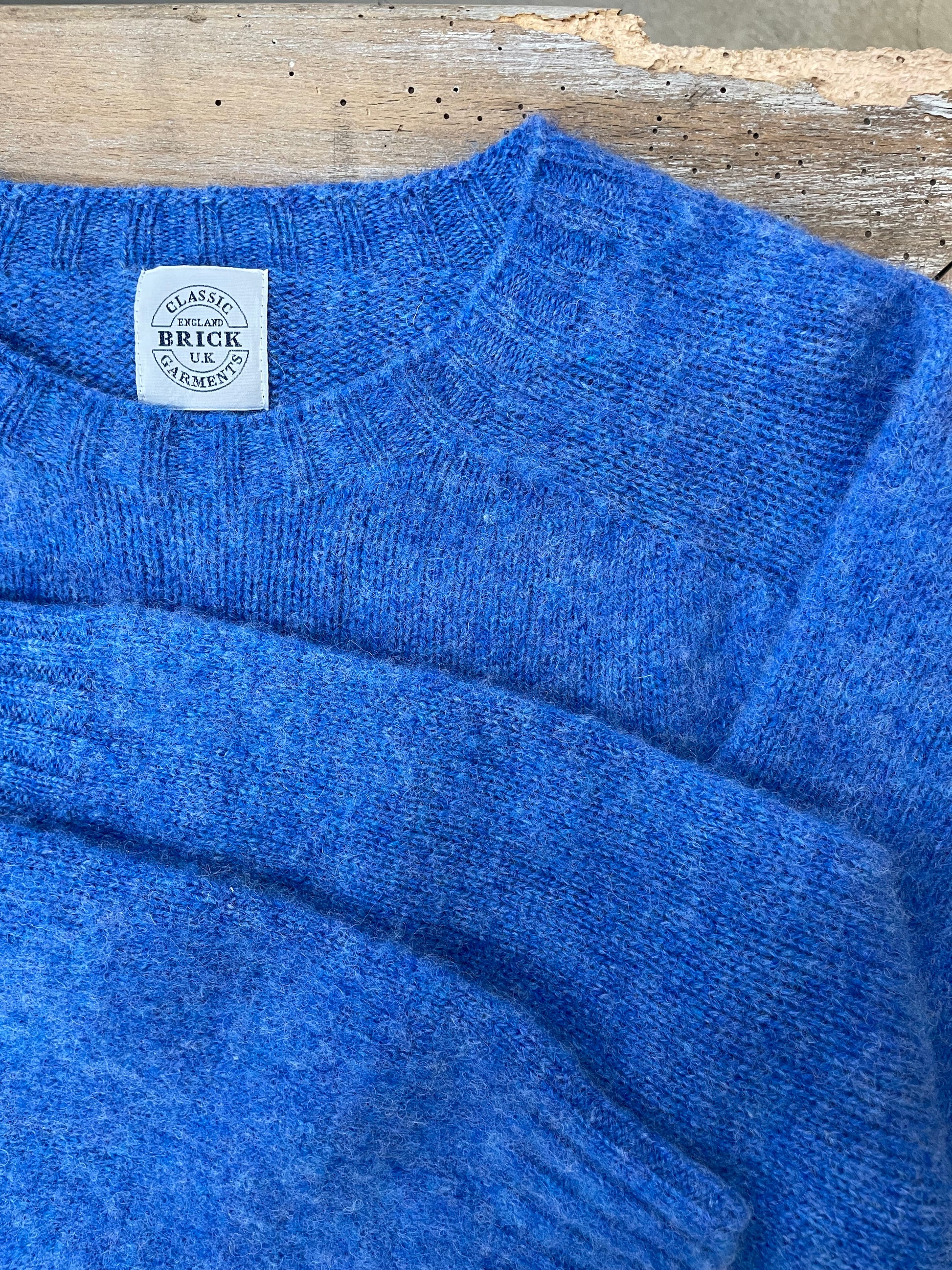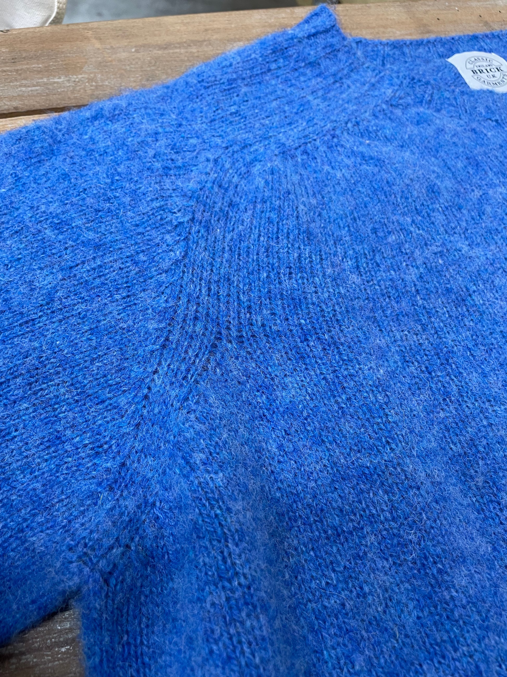 シェットランド島の羊毛をイギリス国内の紡績工場で糸にした伝統的なニットです。アザミの実を使った旧式の起毛機で起毛させたシープドックニットです。丈夫な毛質と保温性が優れたニットです。独特の光沢感で冬の上品なカジュアルスタイルに向いています。